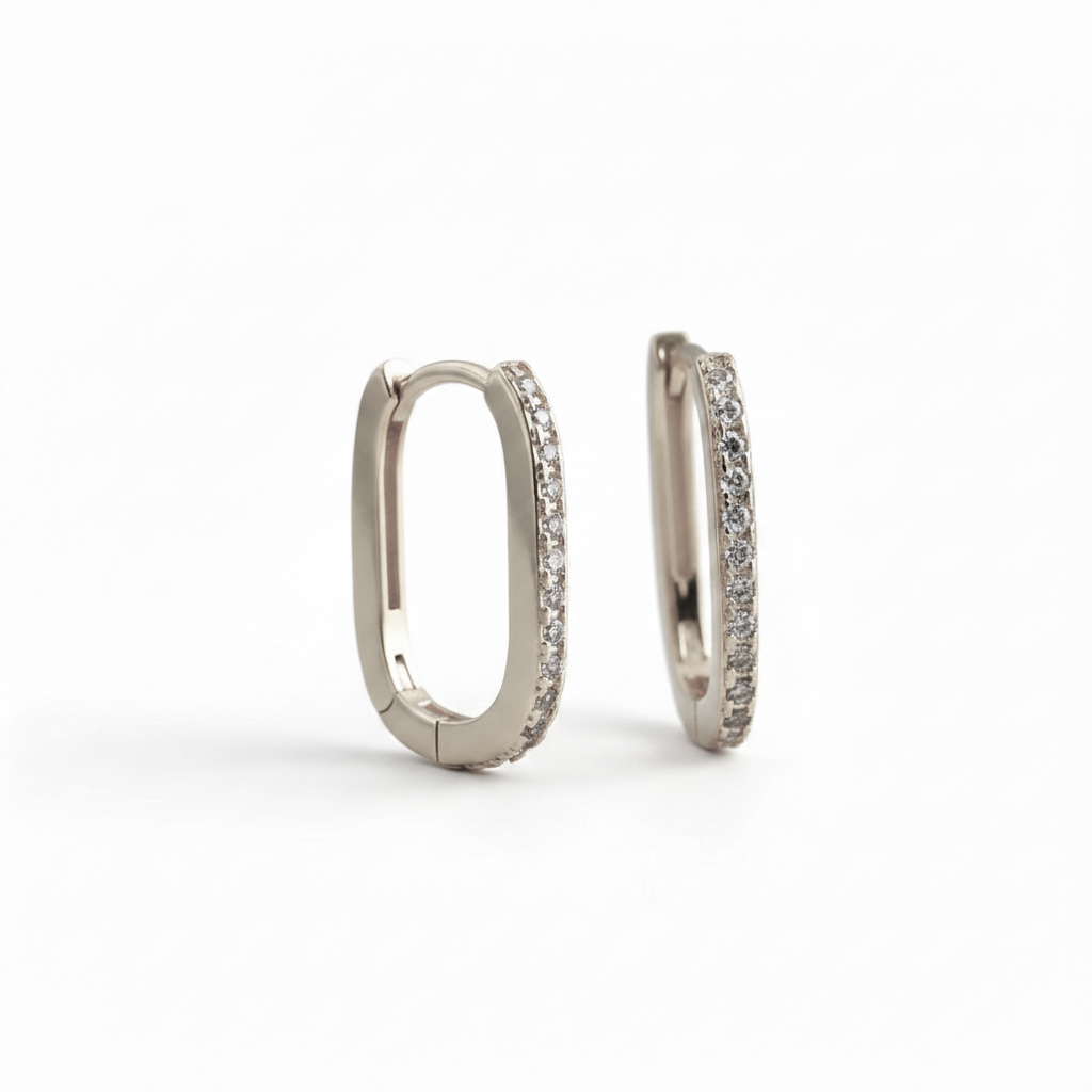 Ατσάλινα Σκουλαρίκια Κρίκοι με Λευκά Ζιργκόν