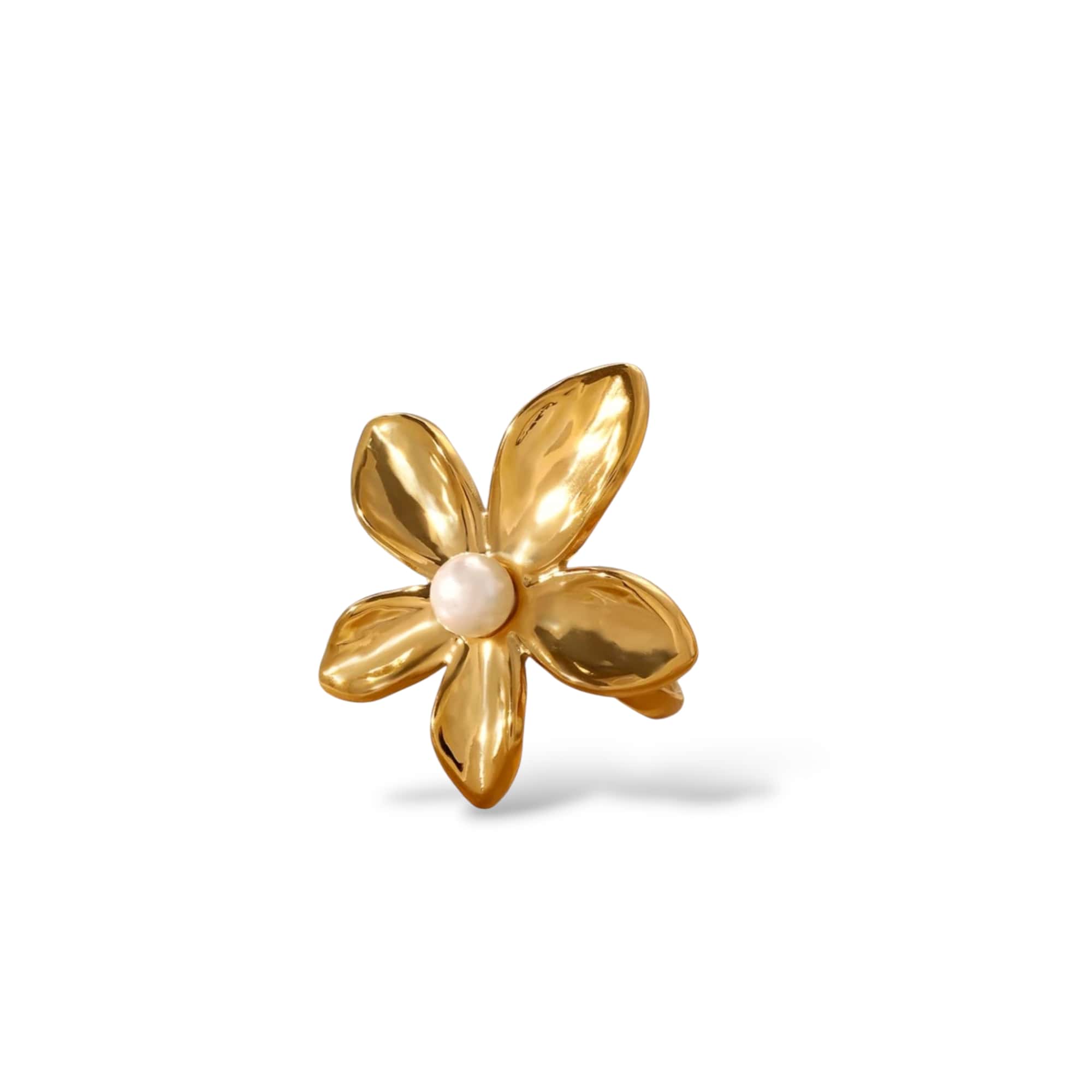 Ατσάλινο Δαχτυλίδι Λουλούδι με Πέρλα
