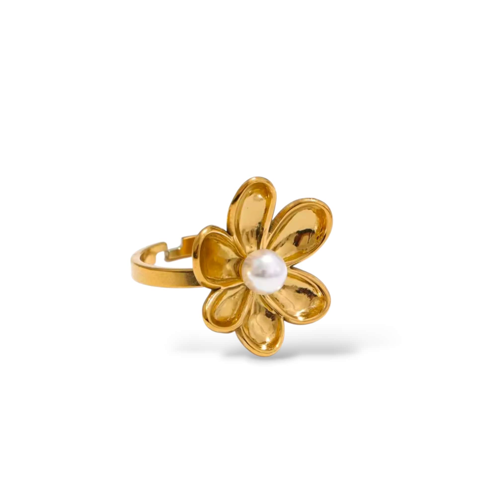Ατσάλινο Δαχτυλίδι Λουλούδι με Πέρλα