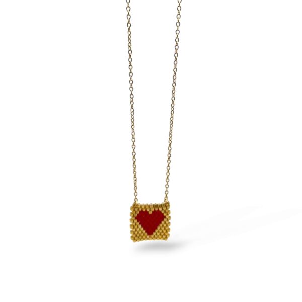 Ατσάλινο Κολιέ Καρδιά με Χάντρες