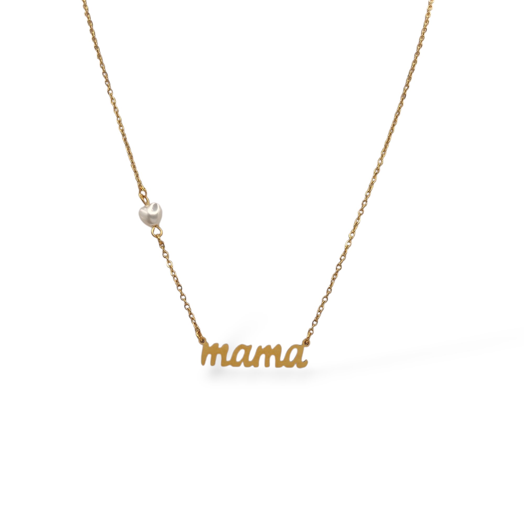Ατσάλινο Κολιέ Μαμά με Καρδιά Πέρλα