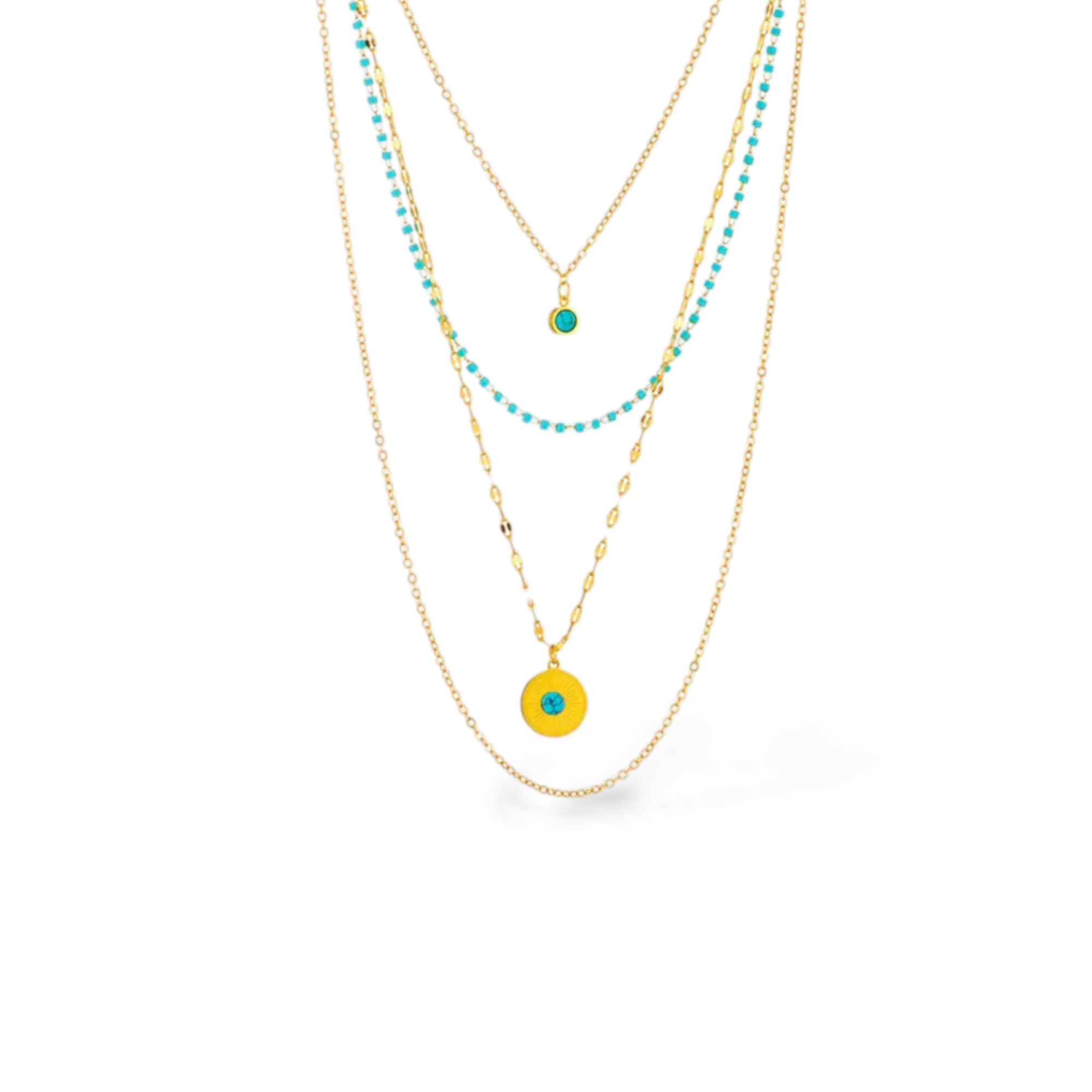 Ατσάλινο Κολιέ Τετραπλό με Τιρκουάζ Χάντρες