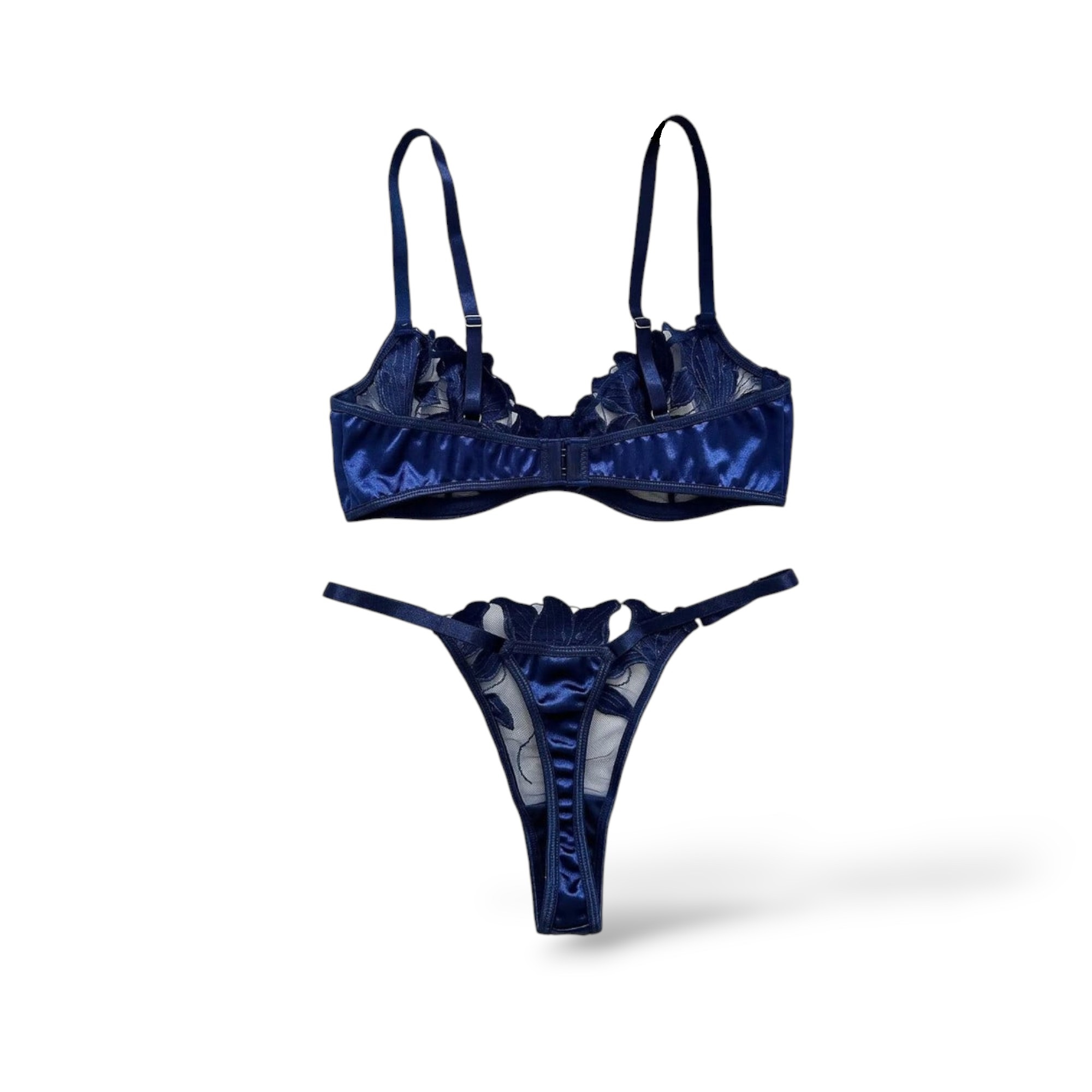Σετ Εσωρούχων Σατέν με Δαντέλα Λουλούδια